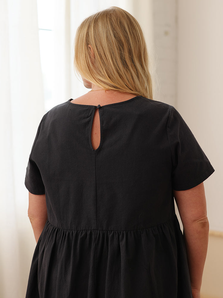 The dress all over Instagram – in an improved fit and fabric. We took years of your feedback on the best-selling Nico Dress, kept everything you loved, now updated in a true-to-size fit with an elegant back button closure for easy on and off. The Nico Dress is the grown-up sundress of your dreams. Its unfussy design exudes easygoing style, making it the perfect staple dress. Inspired by Sadie’s mom’s handmade dresses, it's a modern twist on a classic silhouette that moves as beautifully as it wears. Whether you're chasing kids at home or picking flowers in a field, the Nico promises to make you feel like your best self.
